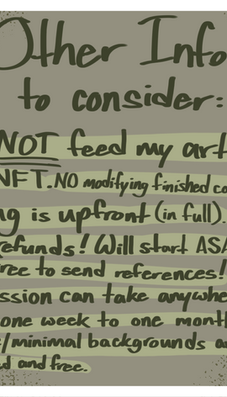 Email or Instagram DMs are preferred if you want to request a commission. Tell me your idea! Send references! I want to be able to have as much as I can to go off of your commission request.